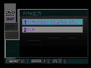音声出力は、アナログ2chX2、デジタルコアキシャル(PCM)、デジタルコアキシャル(PCM/ドルビー)、デジタル光(PCM/ドルビー)、LD用AC-3(ドルビーRF)