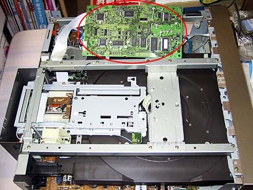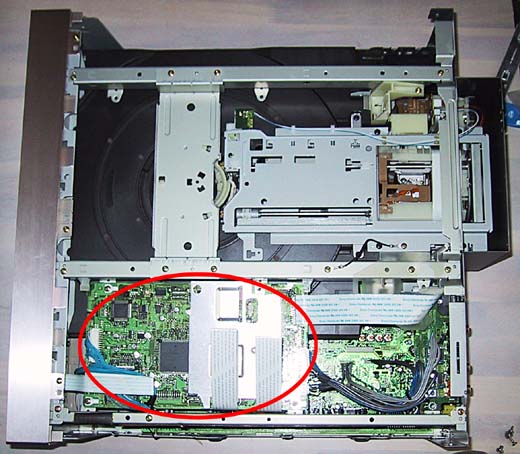 ケースの上蓋を外します。 正面から見て右側の基盤を固定しているネジ4本を外し裏返します。 そのさいフラットケーブルなどを切断せぬように気をつけてください。