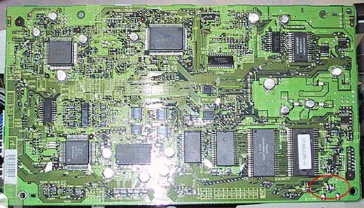 改造する基盤です。右下の赤丸部分が改造箇所です。