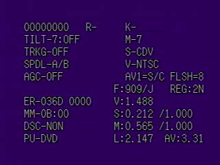 リモコンを押すと「R-」と書かれた部分になにやらコードらしき記号が出ます。 ディスクを入れると「00000000」の部分の数値が変わります。