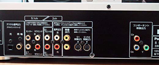 映像出力は、コンポジットX2、S-VIDEOX2、コンポーネント 音声出力は、アナログ2ch、アナログ5.1ch、デジタル光、デジタルコアキシャル リージョン変更方法は他のPanasonicの物を参照してください。