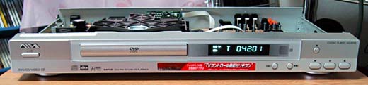 写真は改造後のテストラン中のため天板が外されています。 映像出力は、コンポジットX2、S-VIDEO、D1 音声出力は、アナログ2chX2、デジタル光、デジタルコアキシャル