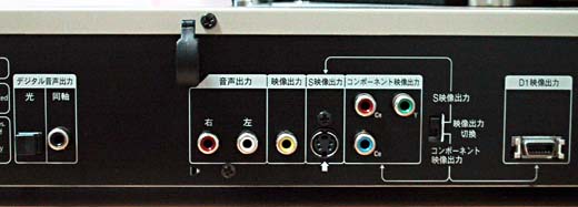 映像出力は、コンポジット、S-VIDEO、コンポーネント、D1 音声出力は、アナログ2ch、デジタルコアキシャル、デジタル光