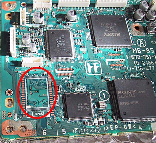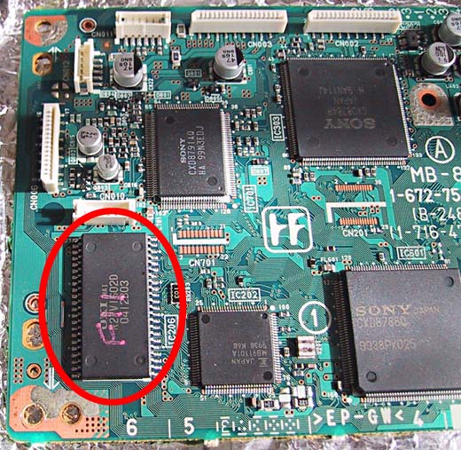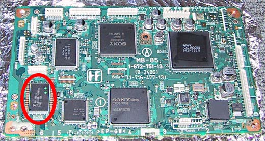 改造箇所はMPEGボードの赤丸部分EEPROM(SOP)を交換するだけです。