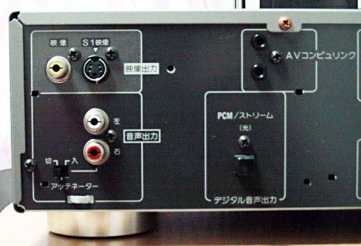 映像出力は、コンポジット、S-VIDEO 音声出力は、アナログ2ch、デジタル光