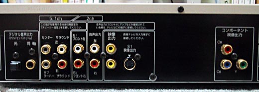 音声出力は、アナログ2ch、アナログ5.1ch、デジタル光、デジタルコアキシャル