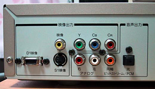 映像出力は、コンポジット、S-VIDEO、コンポーネント、D1 音声出力は、アナログ2ch、デジタルコアキシャル、デジタル光