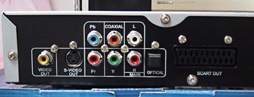 映像出力は、コンポジット、S-VIDEO、コンポーネント 音声出力は、アナログ2ch、デジタル光、デジタルコアキシャル 複合端子 ユーロスカート