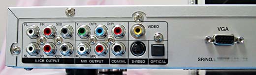 映像出力は、コンポジット、S-VIDEO、コンポーネント、VGA 音声出力は、アナログ2ch、アナログ5.1ch、デジタル光、デジタルコアキシャル