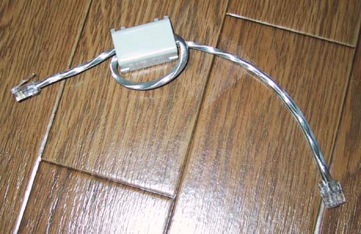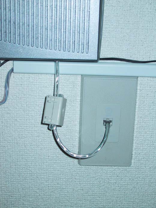 次にモジュラジャックからモデムへのケーブルへ取り付けました。 これが一番高効果があるようです。