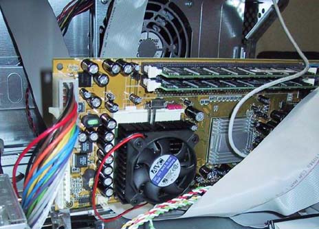 マザーにビデオ、サウンドなど必要な物全てが付いていて先の写真のようにケーブルでPCIスロットのパネルに出せるようになっています。